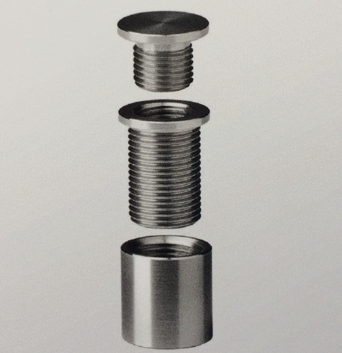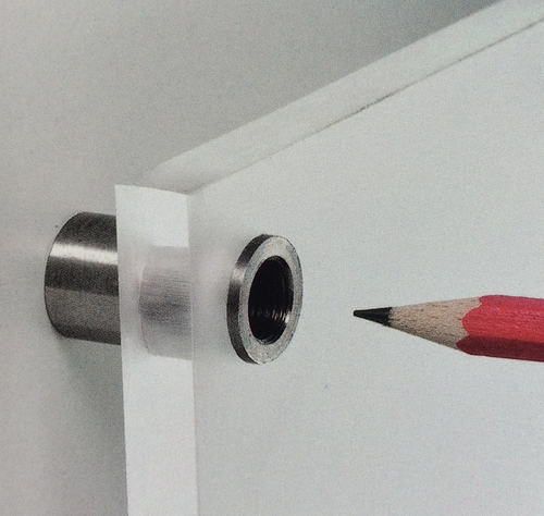 Die Abstandshalter aus Aluminium dienen der Befestigung von Tafeln an der Wand. Achtung! Der Kopf der Befestigungsschraube (nicht im Lieferumfang enthalten) muss einen Mindestdurchmesser von 5 mm haben. Damit wird der Abstandshalter an der Wand oder dem Untergrund befestigt, dann das Schild mit dem Oberteil des Abstandhalters verschraubt.
