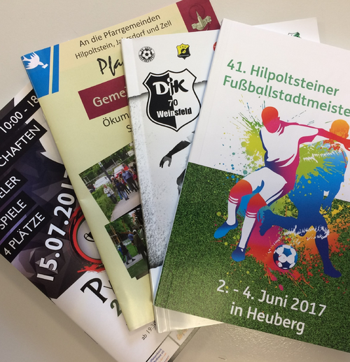 Broschüre mit Klammer- oder Ringösenheftung, Endformat DIN A4 (210 x 297 mm), 4/4 farbig (beidseitiger Druck) Verarbeitung: Rückendrahtheftung oder Ringösenheftung geheftetes Endformat: 21,0 x 29,7 cm (Schriften 6 mm vom Endformatrand weg anlegen) Datenformat: 21,6 cm x 30,3 cm
