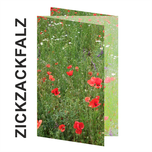 Folder 6-stg DIN A6 Format 148 x 210 mm, 6-seitig, 4-farbig bedruckt Wickelfalz: Endformat: 10,5 cm x 14,8 cm, Datenformat: 31,9 cm x 15,4 cm, Falz von links nach rechts in mm: 103-105-105 ZickZackfalz: Endformat: 10,5 cm x 14,8 cm, Datenformat: 32,1 cm x 15,4 cm, Falz von links nach rechts in mm: 105-105-105 Fensterfalz: Endformat: 10,5 cm x 14,8 cm, Datenformat: 21,5 cm x 15,4 cm, Falz von links nach rechts in mm: 52-105-52