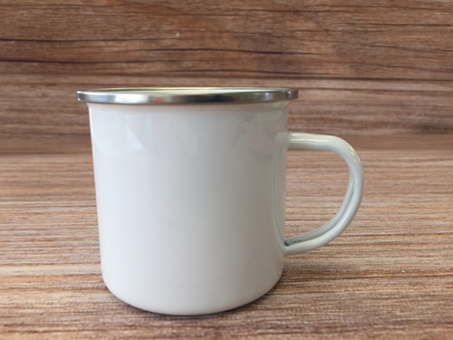 Fototassen-"Emaille" bedruckt in brillanter Fotoqualität mit Ihrem Motiv Hochwertiger Sublimationsdruck glänzend Weiß Emaille, Trinkrand Edelstahl