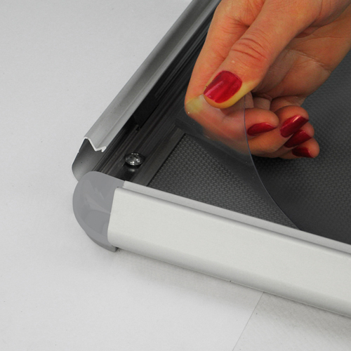 Plakat-Klapprahmen Format A2 Einseitig und für Verwendung im Innenbereich. Die Klapprahmen aus eloxiertem Aluminium haben runde Ecken für eine professionelle Optik. Gleichzeitig werden Schrauben und Dübel mitgeliefert.