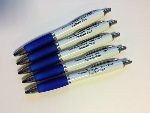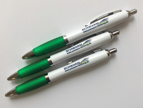 Werbe-KugelschreiberGehäuse: Kunststoff weißGriff: untersch.Farben möglichDruck: 4/0 neben Clip